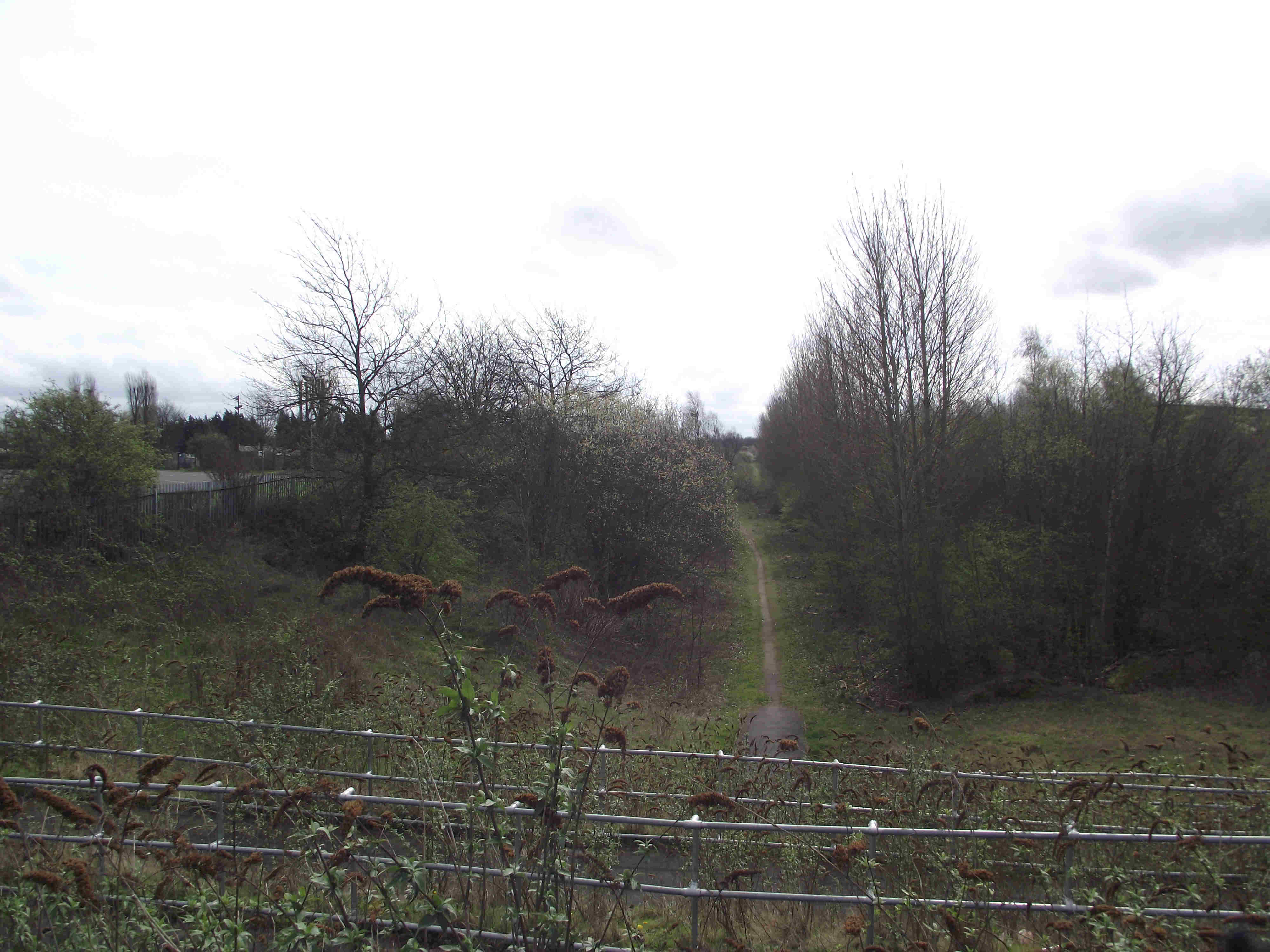 This is Hickman Avenue cross straight over into Sutherland Avenue passing Monmore Green Stadium on your left. Immediately past the stadium TL then left again down some steps. You are now on a disused railway line, follow this (dodging the rubbish!) to reach Chestom Road/Chem Road bridge. Leave the disused railway here and follow Chem Road to Millfields Road.