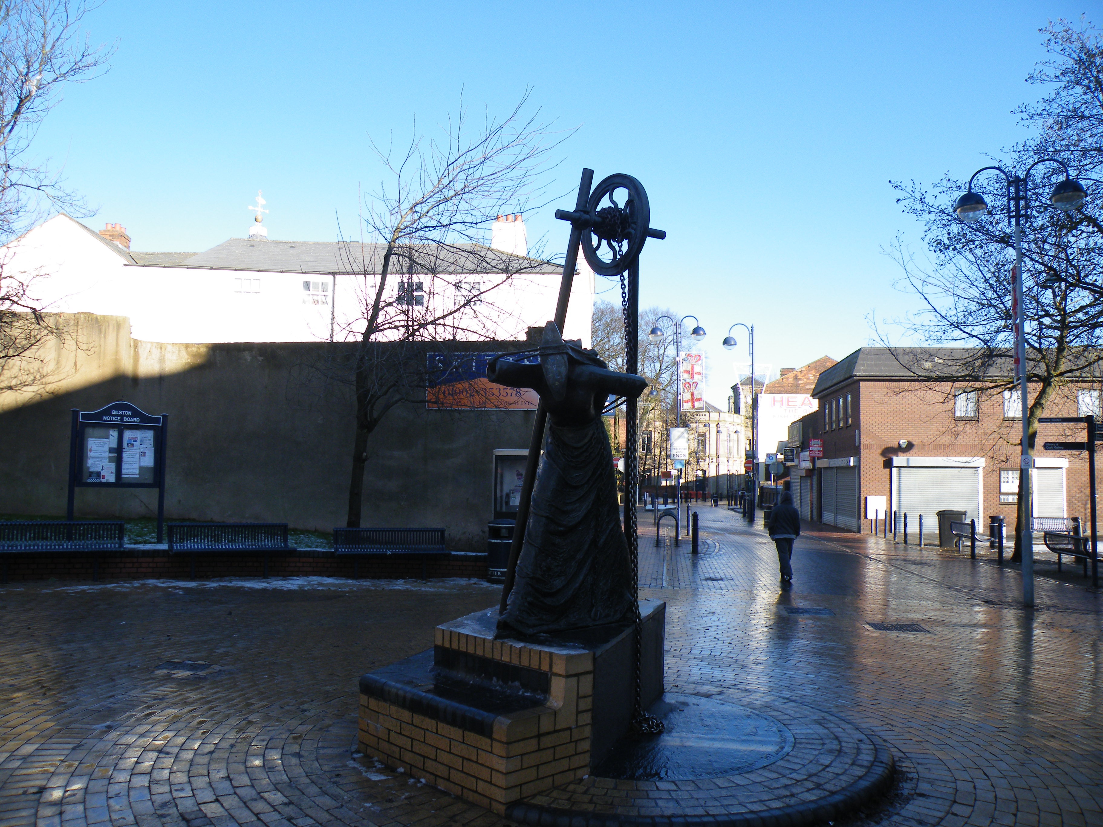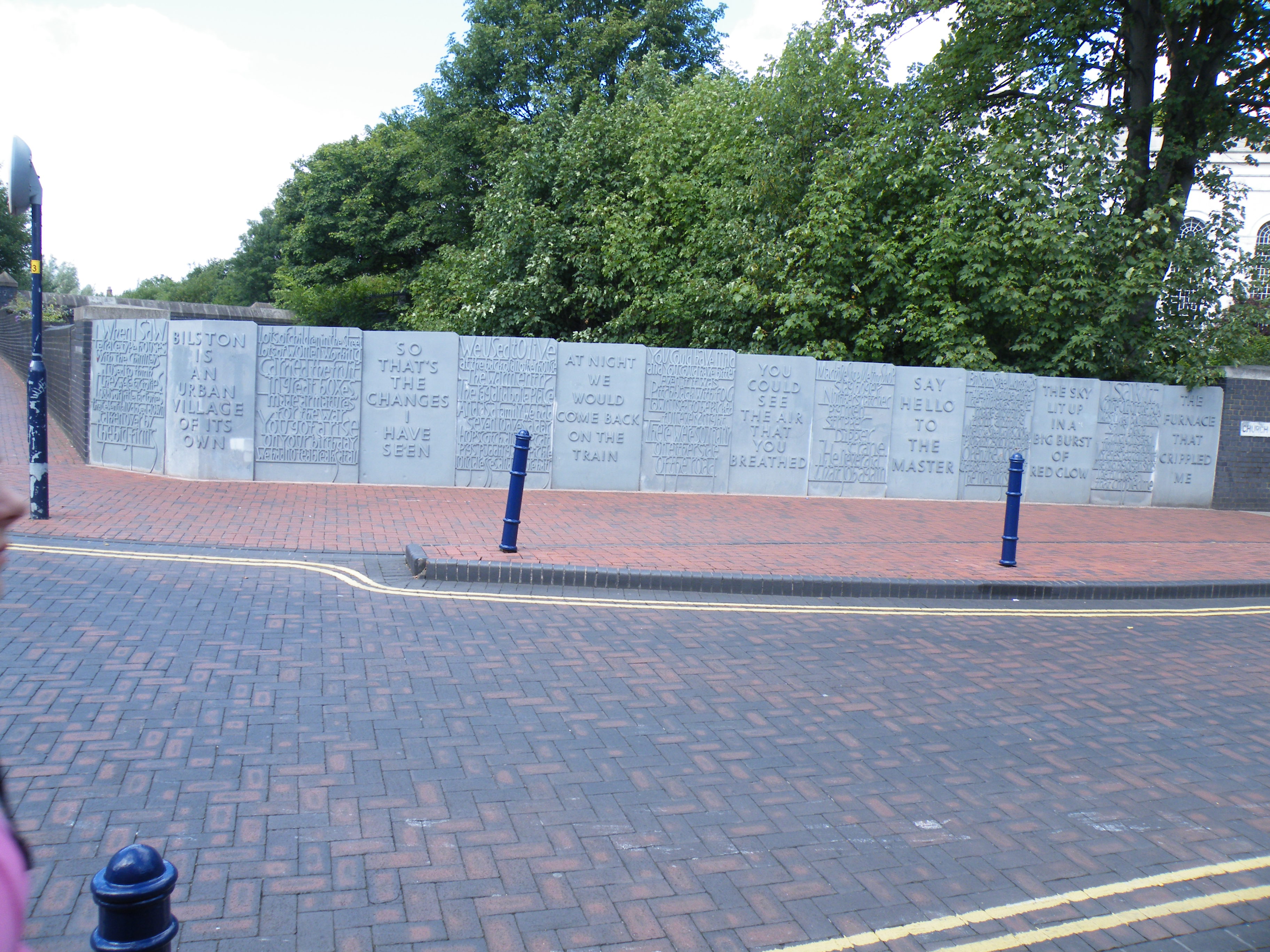 Continue along Walsall Street and follow a path into Greencroft Bear Right along Greencroft at the end of which can be seen The Old Labour Exchange the walk continues to The Left and into Hickman Park. There are a number of information Plaques (example here)throughout the park. There is also a small pool. Continue through the park to reach Wolverhampton Street, Turn Left passing The Pentecostal Church and Bilston Resource Centre to reach Millfields Roundabout where a Plaque (Close up here) Commemorating Bilston Steelworks stands. Looking ahead towards the Coseley Road McDonalds is visible across the Roundabout. Continuing along High Street the walk passes The Greyhound and Punchbowl, Wetherspoon's Sir Henry Newbolt and The Job Centre on the Left whilst on the Right is The Swan, Lidl's and Stonefield Post Office with The Trumpet - Popular with Jazz Fans - Adjacent. Continue walking straight ahead to pass The Horse And Jockey Turn Right immediateky past the H&J Continue here